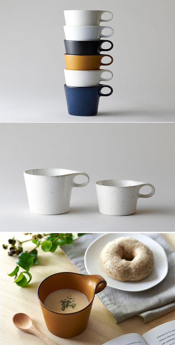 スタッキングできること、持ちやすさを損なわないこと、スープも飲める程よいサイズ、