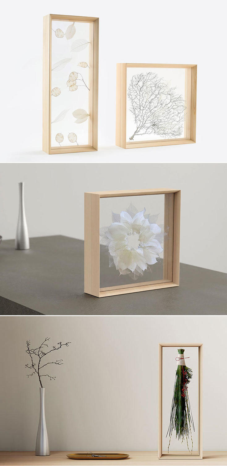 透明度なフレームと視界の遮りのない木のフレームで、中のアートをまるで一枚の絵画のように飾ることができます。
